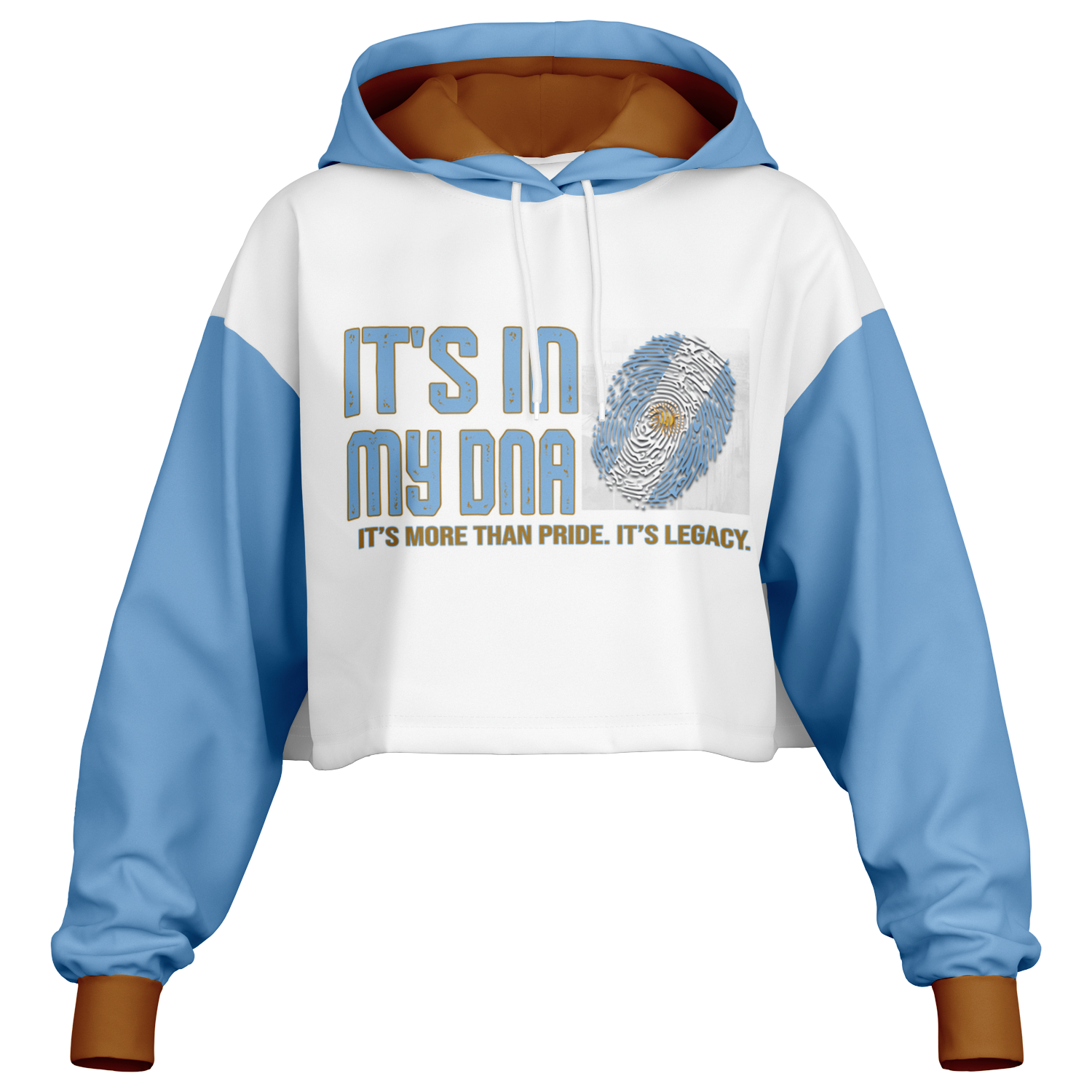 π¦π· Itβs In My DNA β Argentina Cropped Hoodie (White/Light Blue/Gold)