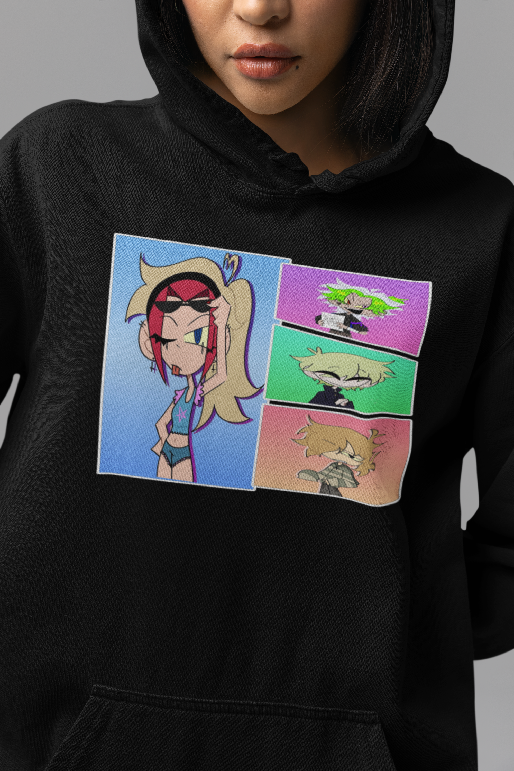 The Sharky Originals™ – Studio Cast Chaos Hoodie brings together four original characters from the Sharky world — each with their own energy, attitude, and story.